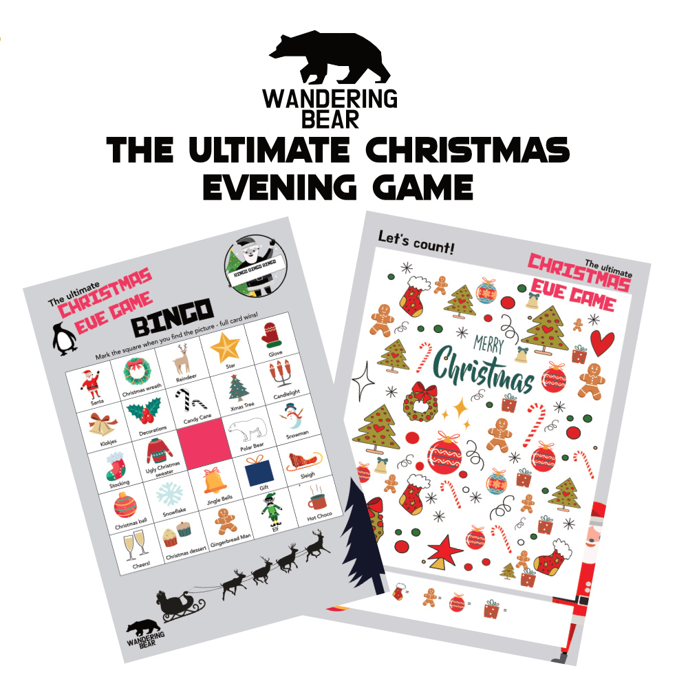 The Ultimate Christmas Eve Game is fun for all ages. Together, you will complete ten funny, challenging, and enjoyable activities. You can simply play it at home at the kitchen table or cozily in the living room by a fireplace.